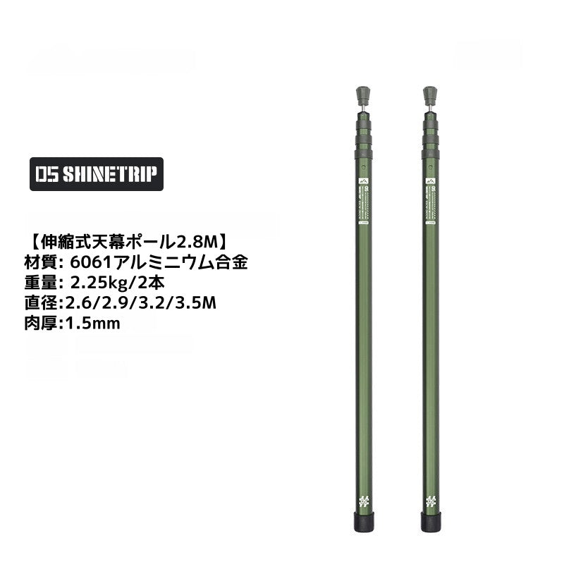 ロック式伸縮天幕ポール 2.8m(2本セット)