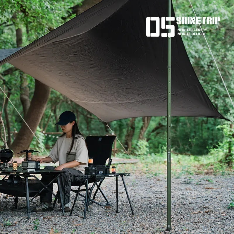 安定感と強度を両立した設計で、大型タープもしっかりサポート。