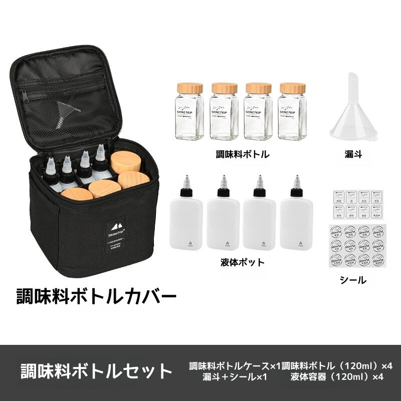 ・ボトル:ガラス(120ml)×4本、液体ボトル(HDPE素材・120ml)×4本