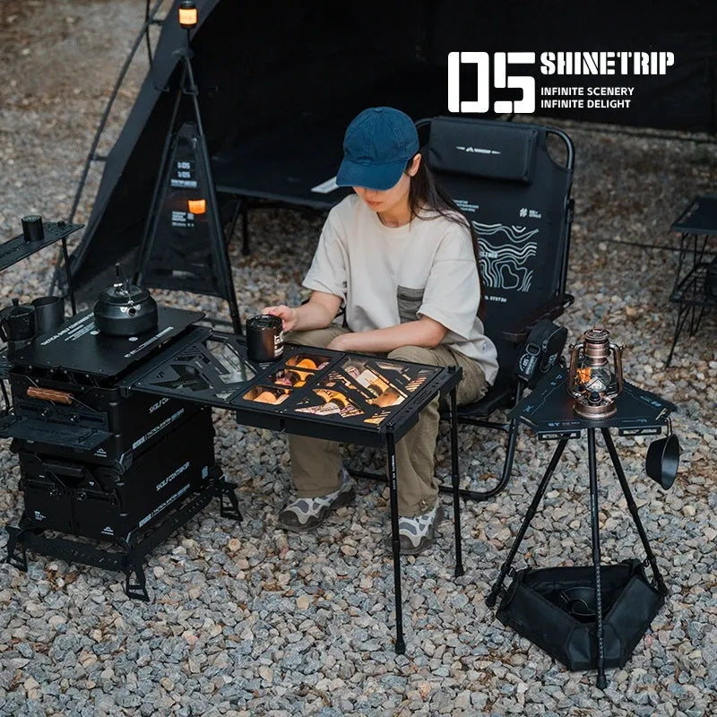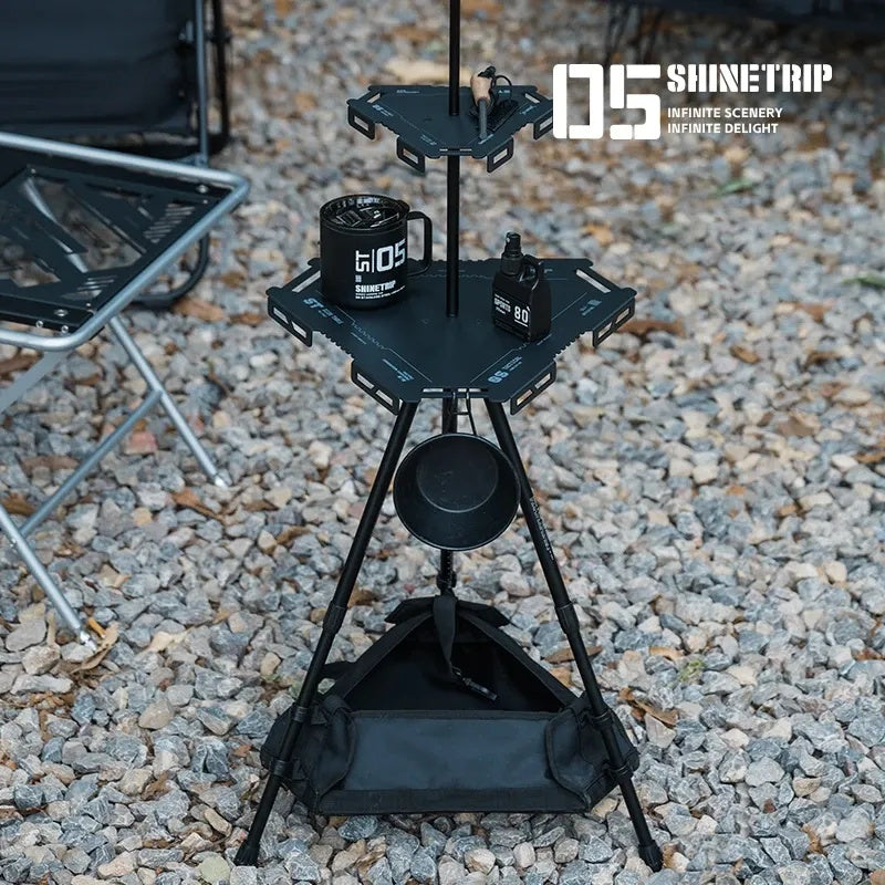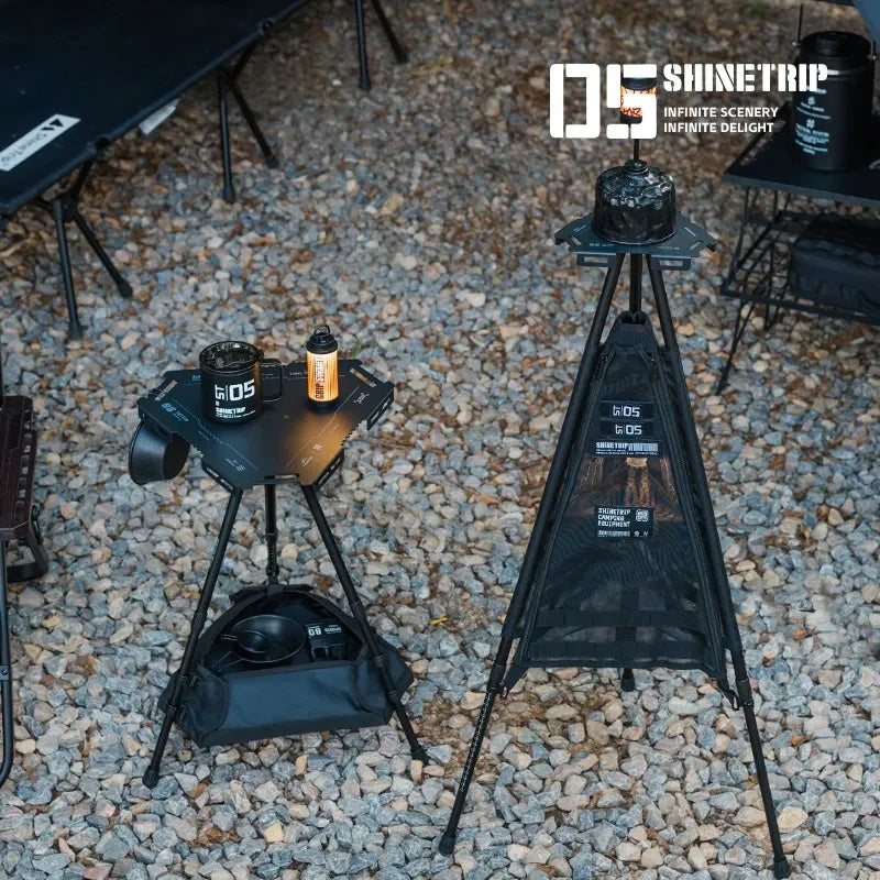 六角形のデザインが特徴の戦術型テーブル。ローテーブル/サイドテーブルの2モデルから用途に合わせて選択可能。シーンに応じて自由に組み合わせられ、キャンプサイトをより機能的に。